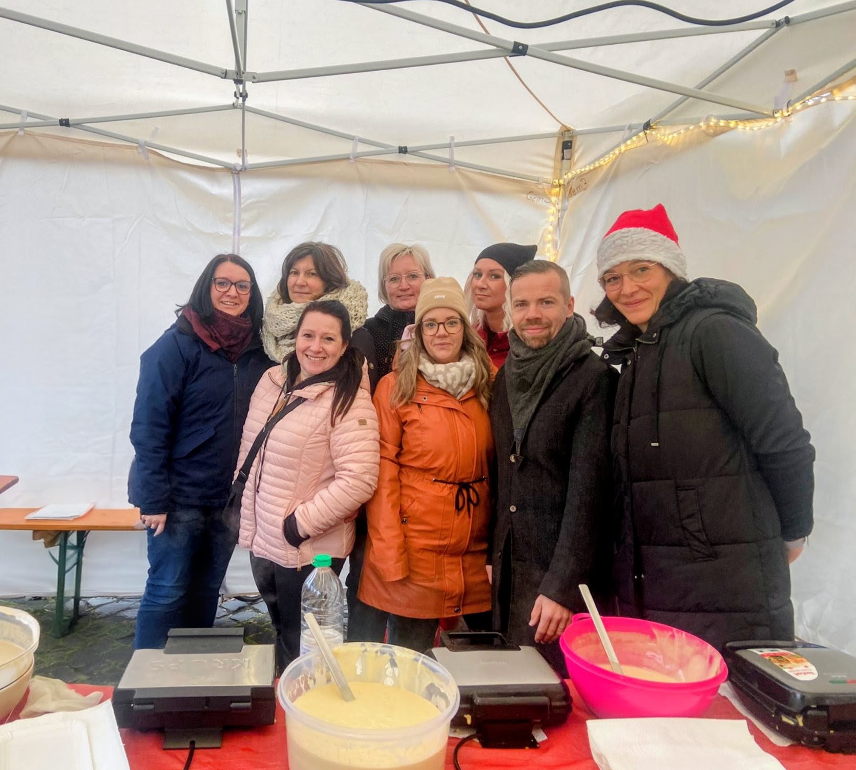 Die Kita Schlossmäuse ist fester Bestandteil des Weihnachtsmarktes in Pomßen. Wir sind nun schon geübt als Waffelbäckerei. Schon aus einigen Metern Entfernung riecht man den Duft von frisch gebackenen Waffeln und die Kinder freuen sich immer ihre Erzieherinnen auf dem Weihnachtsmarkt zu sehen. Und wir finden es auch immer wieder schön, unsere ehemaligen Kinder und Familien zu treffen.